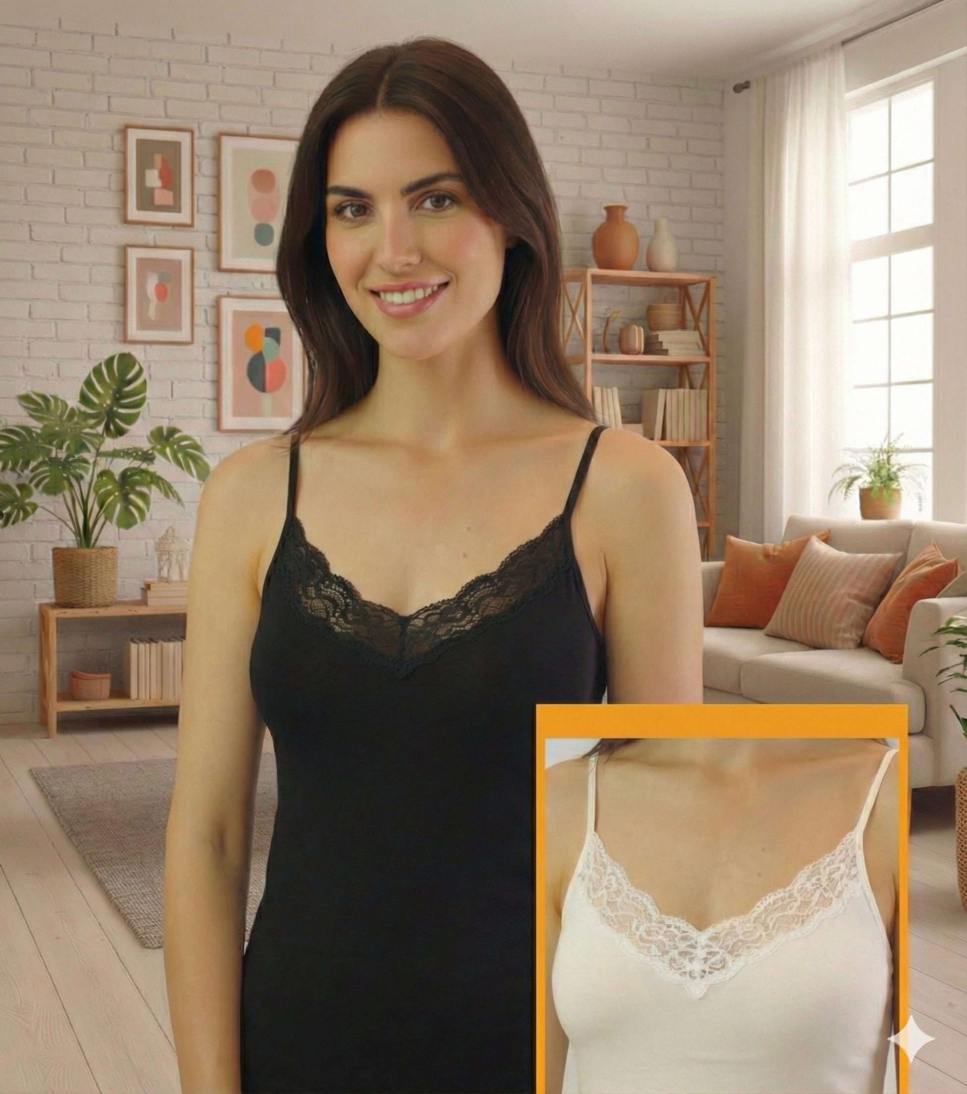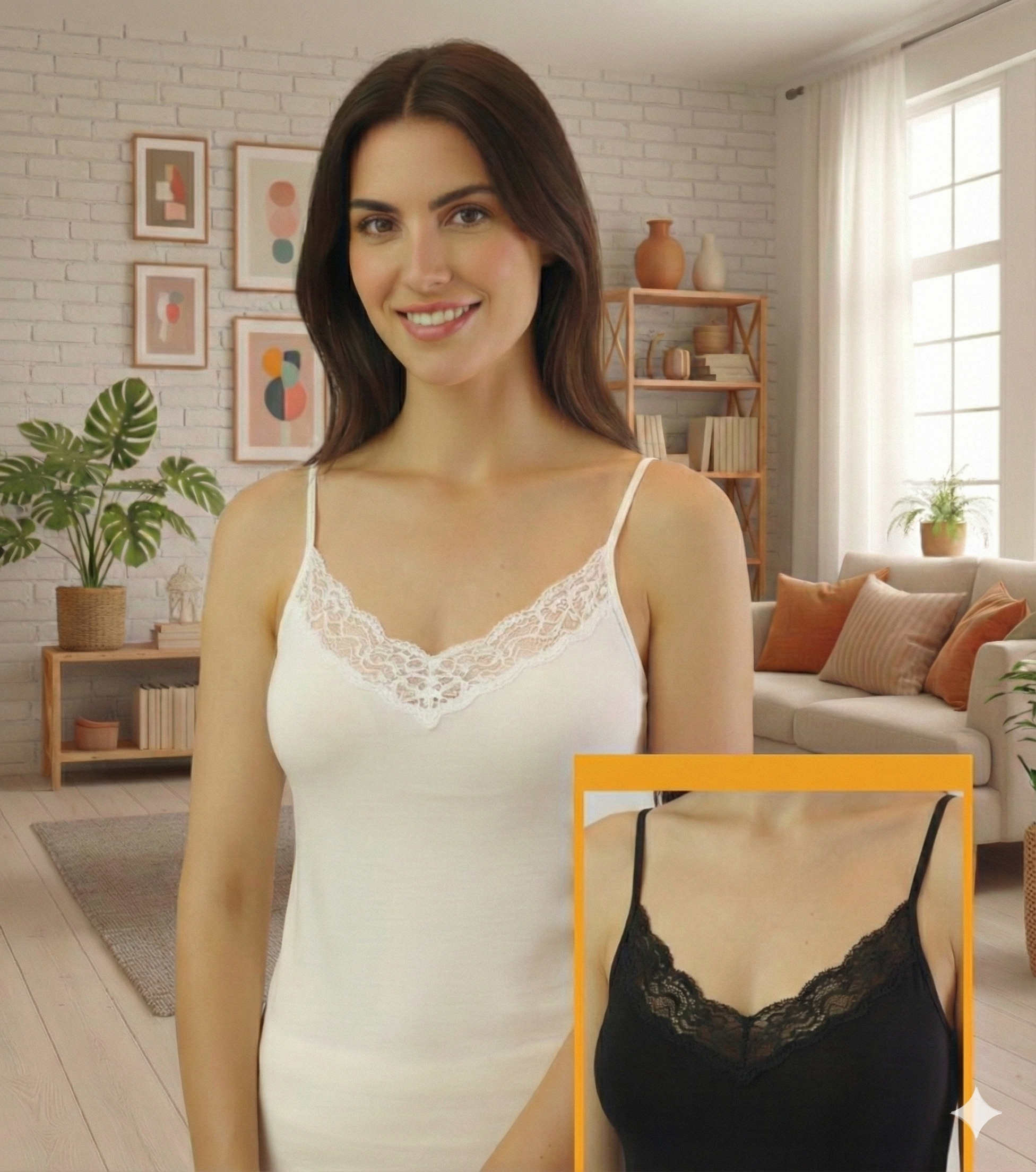 גופיה אנגורה לנשים ללא שרוול עם תחרה גיפור